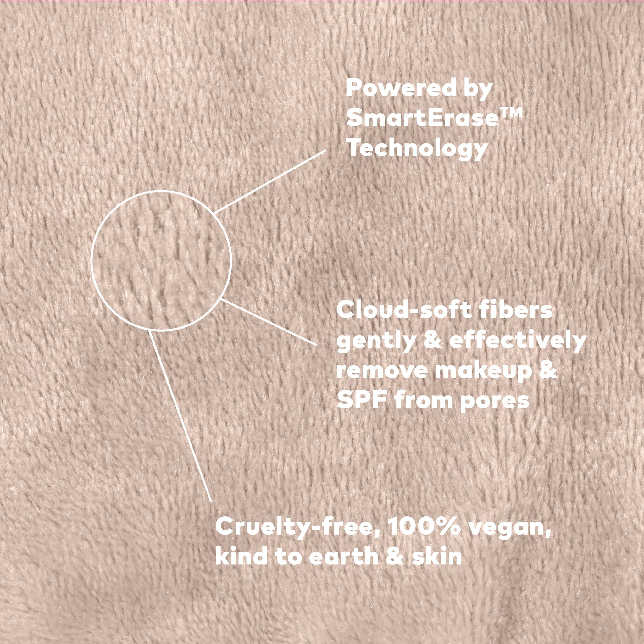 BEST SELLER Includes 7 Daily MakeUp Erasers, 5in x 4in. Laundry bag included. Erase all makeup with JUST WATER™ including waterproof. Our patented, water-activated, cloud-soft fibers gently & easily remove all makeup & sunscreen from pores. 2 in 1 benefit: one side erases makeup & one side exfoliates skin. ✓ Dermatologist Recommended for sensitive skin ✓ SmartErase™ Technology ✓ Reusable & machine washable ✓ Great for everyday makeup The Original MakeUp Eraser® is non-irritating and non-drying, making it perfect for sensitive skin. It's non-comedogenic, safe for lash extensions, & entirely oil-free.