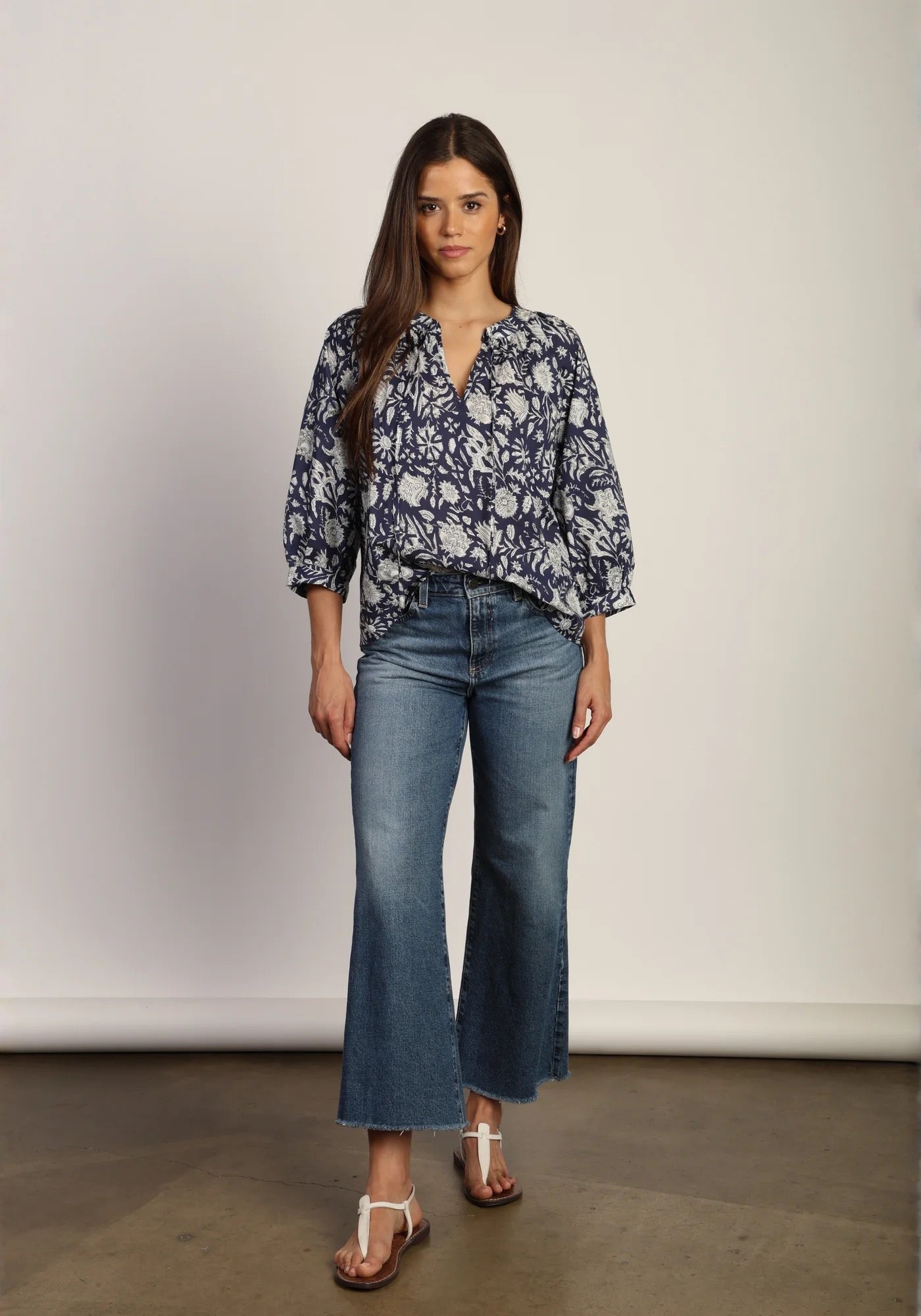 Embrace your style with the Dylan Emma Top! Adorned with a stunning floral design, this 100% cotton piece offers both comfort and elegance. The three-quarter sleeves add a touch of sophistication, making it perfect for any occasion. Elevate your wardrobe and let your personality bloom!