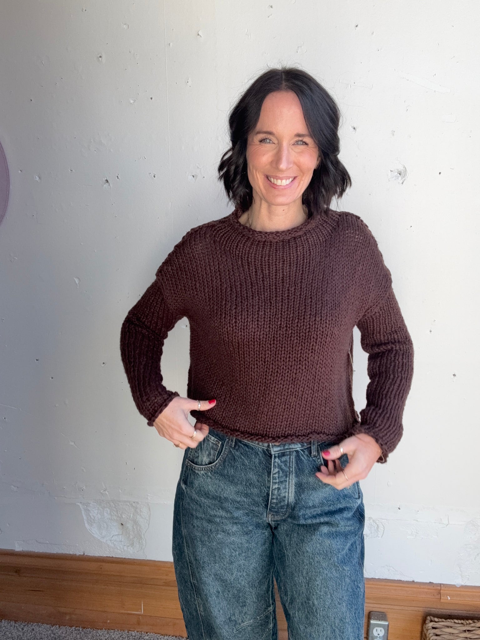 So light and perfect for any-season layering, this staple sweater is featured in an airy cotton knit with a rolled neckline and dropped shoulders for that laidback look.