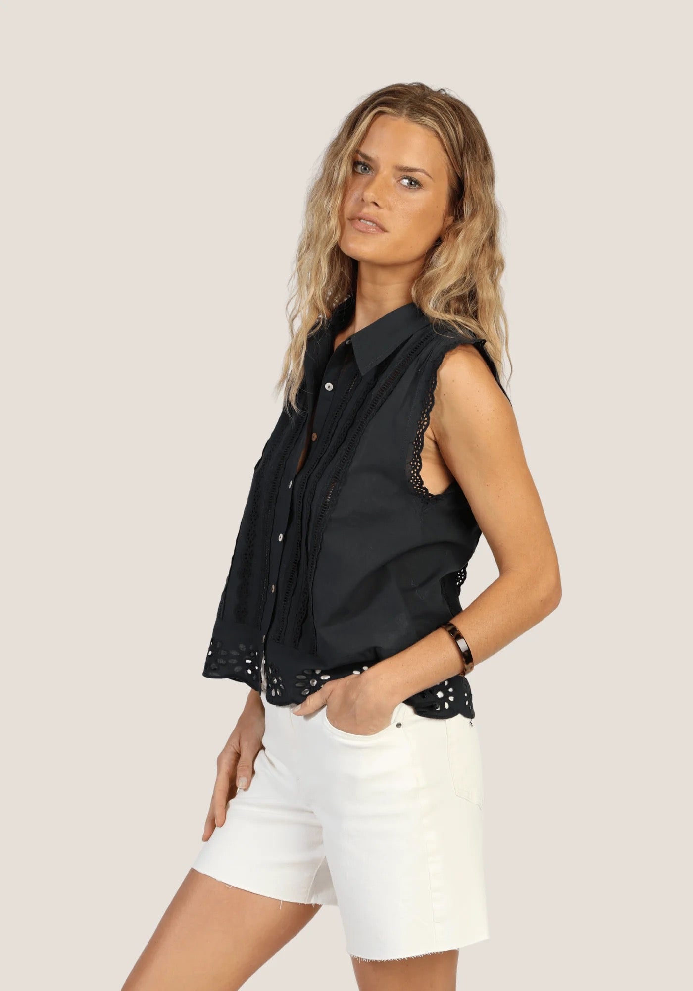 cutout lace w/ shirring