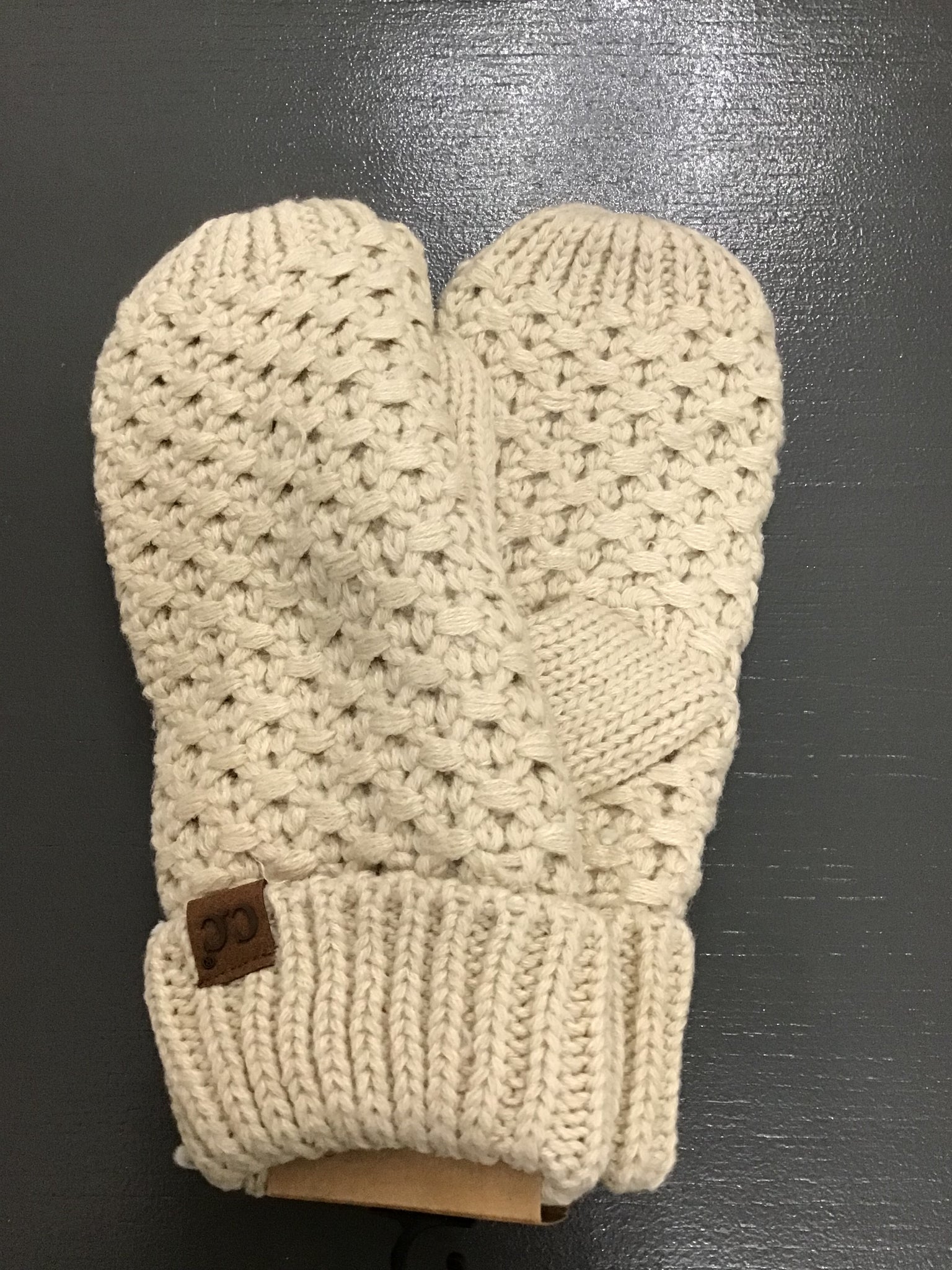 C.C Cross Cell Stitch Knit Mitten Winter Gloves